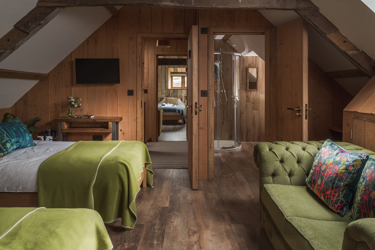The Milking Parlour is a generously proportioned event space complete with a fully equipped commercial kitchen and two cosy meeting rooms, both of which have sofa beds and can be used as additional bedrooms.